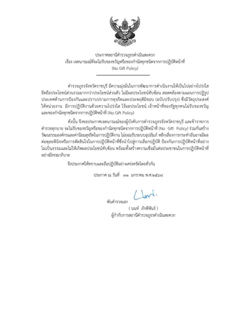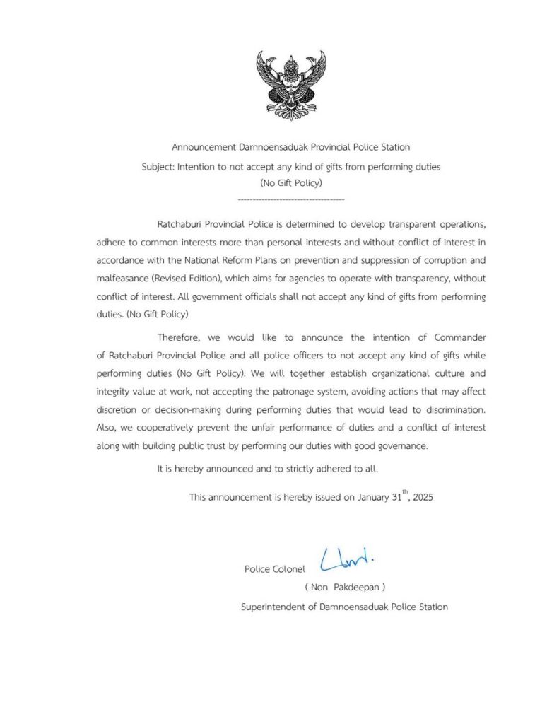 สภ.ดำเนินสะดวก เรียน ผู้บังคับบัญชา วันที่ 18 มี.ค.68 เวลา 13.30 น พ.ต.อ.ภูภณ ทัพเจริญ ผกก.สภ.ดำเนิน